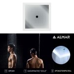 Κεφαλή ντους οροφής εντοιχισμού με χρωματοθεραπεία Icicle 47×47εκ. 2 ροών (βροχή ή καταρράκτης), με χρωματοθεραπεία & remote control, από ανοξείδωτο ατσάλι, Almar Ιταλίας