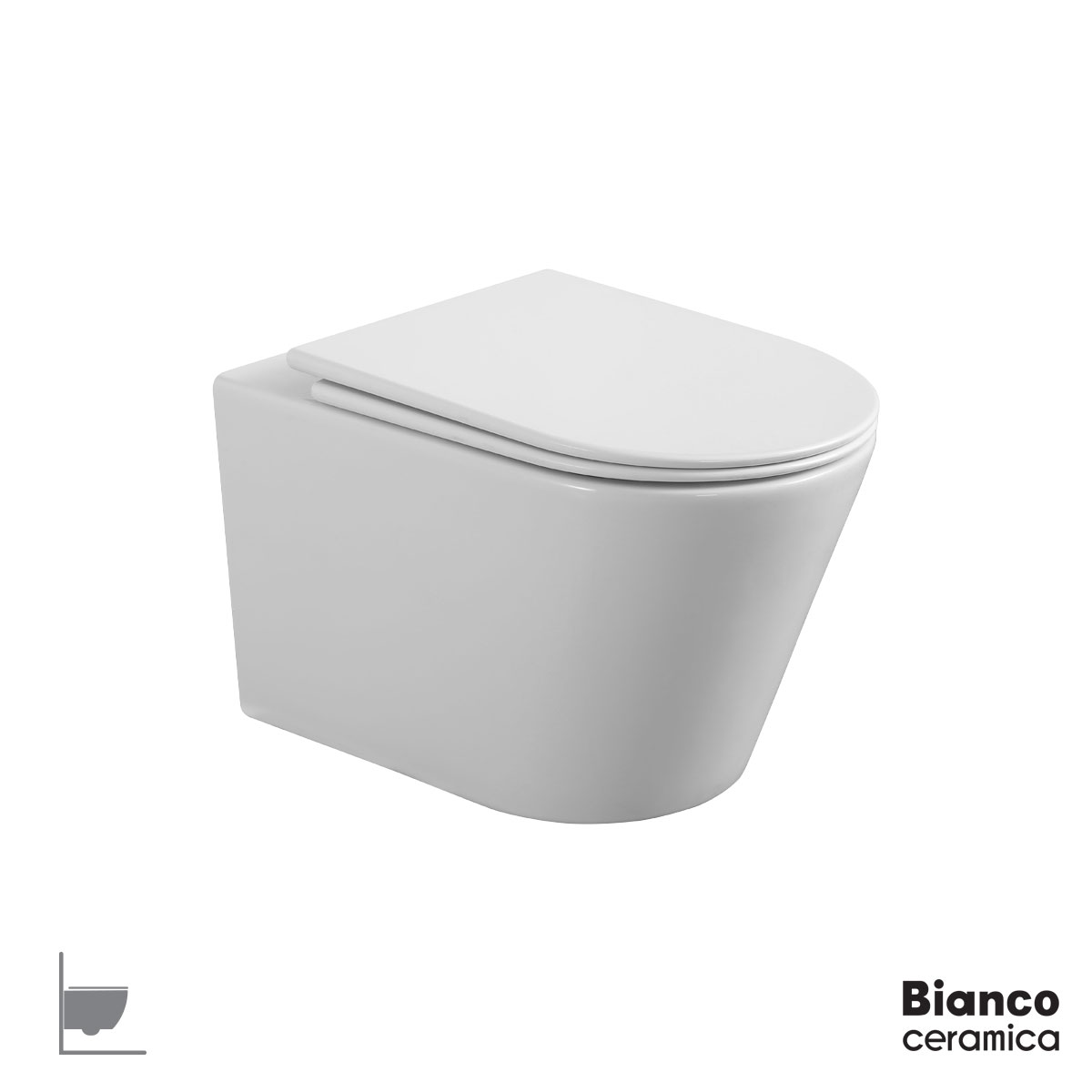 Λεκάνη KATA RIMLESS κρεμαστή, προβολής 49 εκ., με αποσπώμενο κάλυμμα βακελίτη Slim soft-close, BIANCO CERAMICA