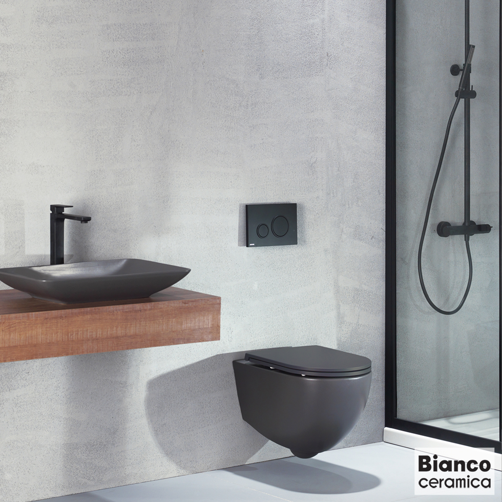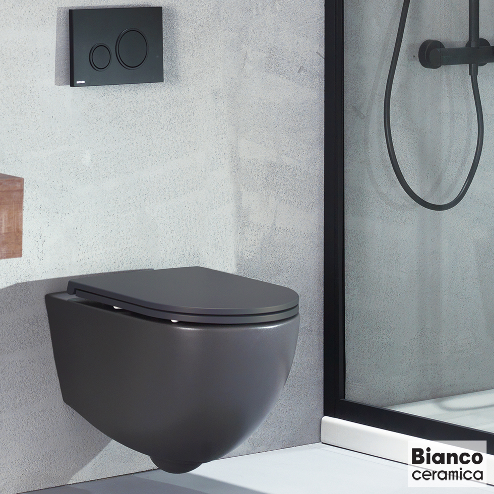 Λεκάνη κρεμαστή LENTA Rimless με προβολή 53cm, με κάλυμμα βακελίτη Soft-close, με σύστημα γρήγορης απασφάλισης, BIANCO CERAMICA