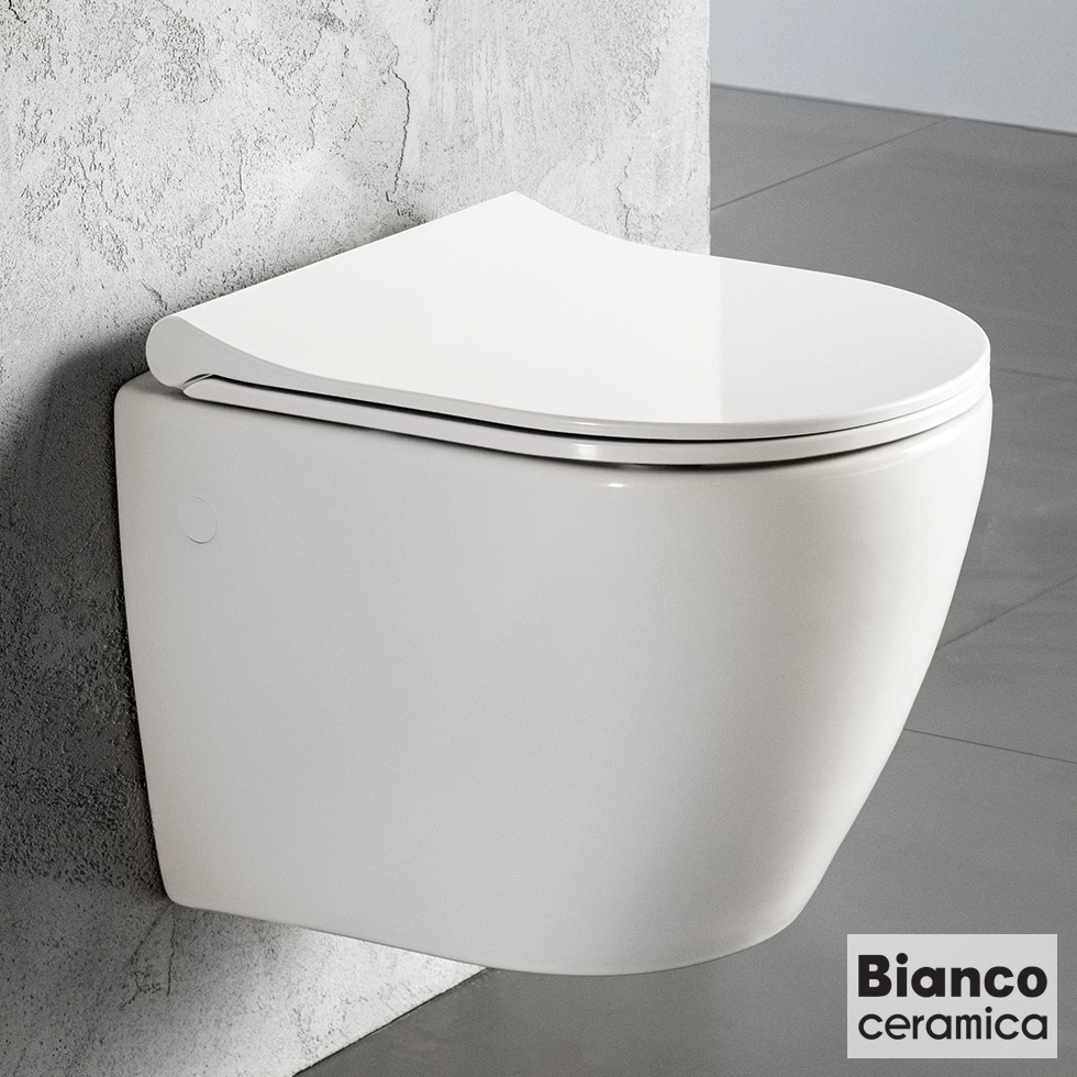 Λεκάνη VITO κρεμαστή, προβολής 48εκ., με αποσπώμενο κάλυμμα βακελίτη, BIANCO CERAMICA