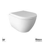 Λεκάνη XL κρεμαστή, προβολής 60 εκ., με κάλυμμα βακελίτη soft-close, BIANCO CERAMICA