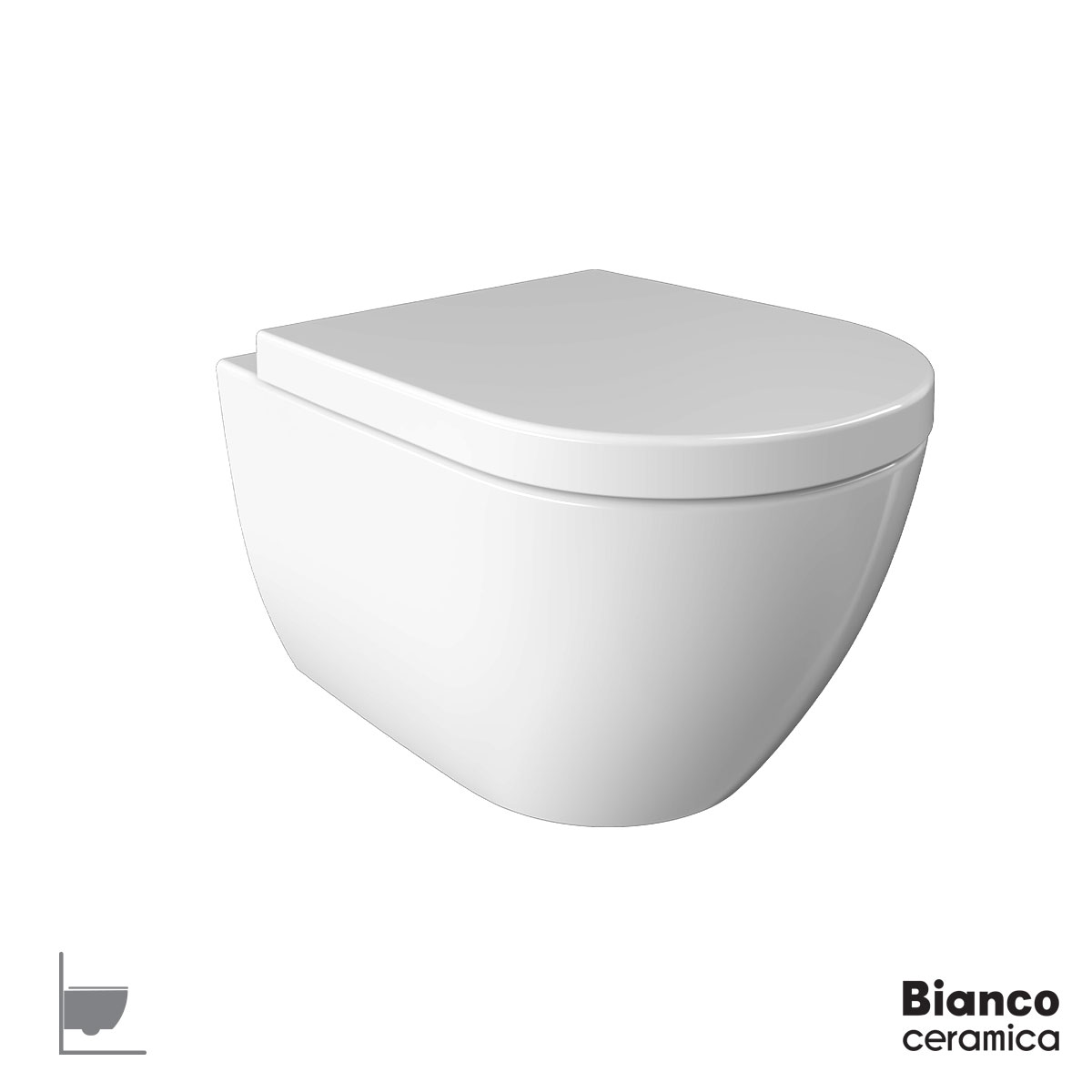 Λεκάνη XL κρεμαστή, προβολής 60 εκ., με κάλυμμα βακελίτη soft-close, BIANCO CERAMICA