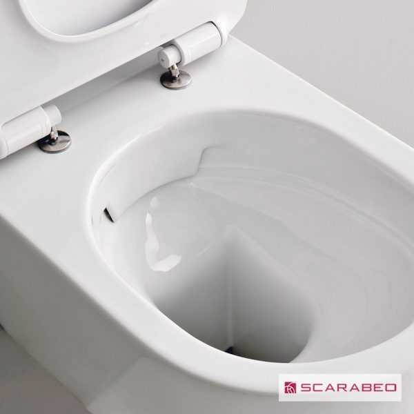 Κρεμαστή λεκάνη MOON clean-flush με αποσπώμενο κάλυμμα Slim Soft-Close, προβολή 50,5 εκ., SCARABEO Ιταλίας