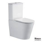 Λεκάνη VERSA RIMLESS χαμηλής πίεσης πισωστόμια, προβολή 63 εκ., με καζανάκι με μηχανισμό 3/6lt & αποσπώμενο κάλυμμα βακελίτη Sli