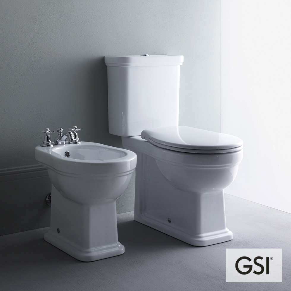 Λεκάνη CLASSIC χαμηλής πίεσης πισω/κατωστόμια με καζανάκι, μηχανισμό 3/6lt & κάλυμμα βακελίτη λευκό SOFT CLOSE, GSI Ιταλίας
