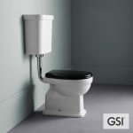 Λεκάνη CLASSIC/54 υψηλής πίεσης κατωστόμια με καζανάκι χαμηλής κατεβασιάς κομπλέ με εξάρτηση & κάλυμμα βακελίτη μαύρο SOFT-CLOSE