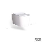 Λεκάνη ENZO RIMLESS κρεμαστή, προβολής 55,5 εκ., με αποσπώμενο κάλυμμα βακελίτη Slim soft-close, BIANCO CERAMICA