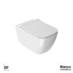 Λεκάνη κρεμαστή MIZO Rimless με προβολή 51,5 cm, με κάλυμμα βακελίτη Slim Soft-close, με σύστημα γρήγορης απασφάλισης, BIANCO CERAMICA