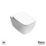 Λεκάνη κρεμαστή MIZO Rimless με προβολή 51,5 cm, με κάλυμμα βακελίτη Slim Soft-close, με σύστημα γρήγορης απασφάλισης, BIANCO CERAMICA