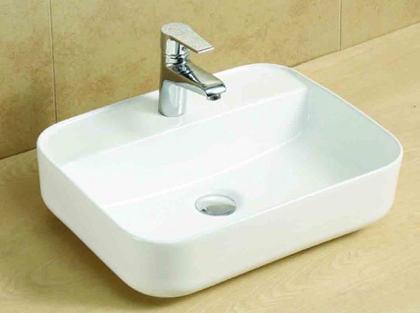 Νιπτήρας πορσελάνης λευκός επικαθήμενος χωρίς υπερχείλιση με οπή για τοποθέτηση μπαταρίας στο κέντρο