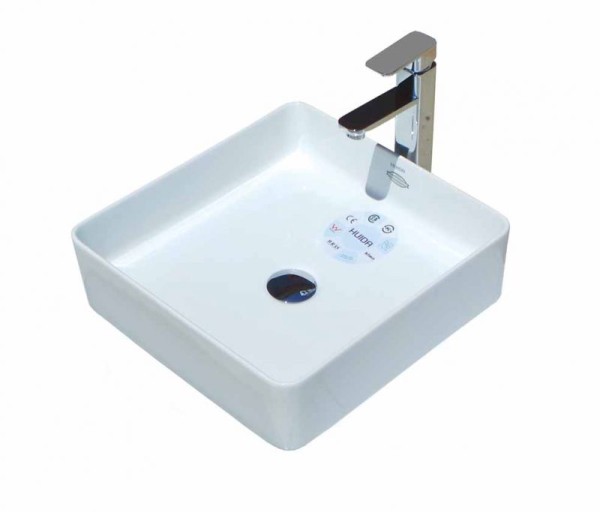 Τετράγωνος νιπτήρας πορσελάνης της HUIDA για τοποθέτηση σε πάγκο.