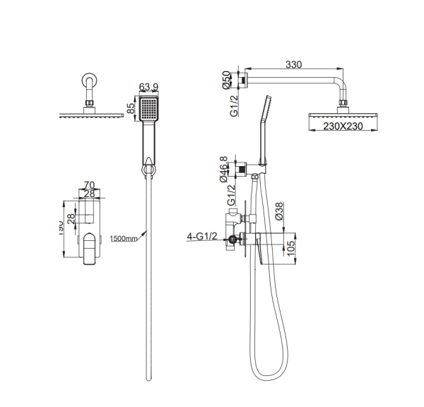 Nax 16010 N Σετ Εντοιχ. Με Μικτη 2 Εξοδων-Βραχιονα-Κεφαλη-Παροχ-Τηλ-Σπιραλ Black Matt