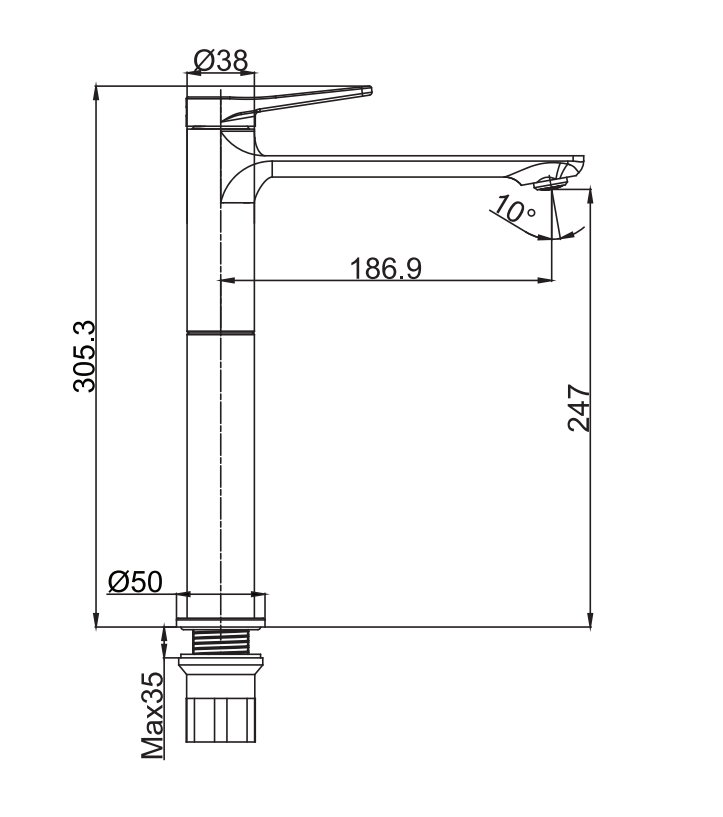 Nax 6814 N Μπαταρια Νιπτηρα Υψηλη Με Βαλβιδα Pop-Up Black Matt