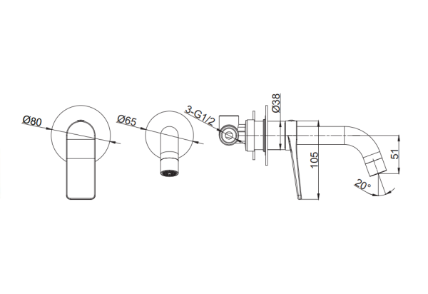 Nax 6818 N Μπαταρια Νιπτηρα Εντοιχιζομενη Χωρισ Βαλβιδα Pop-Up Black Matt