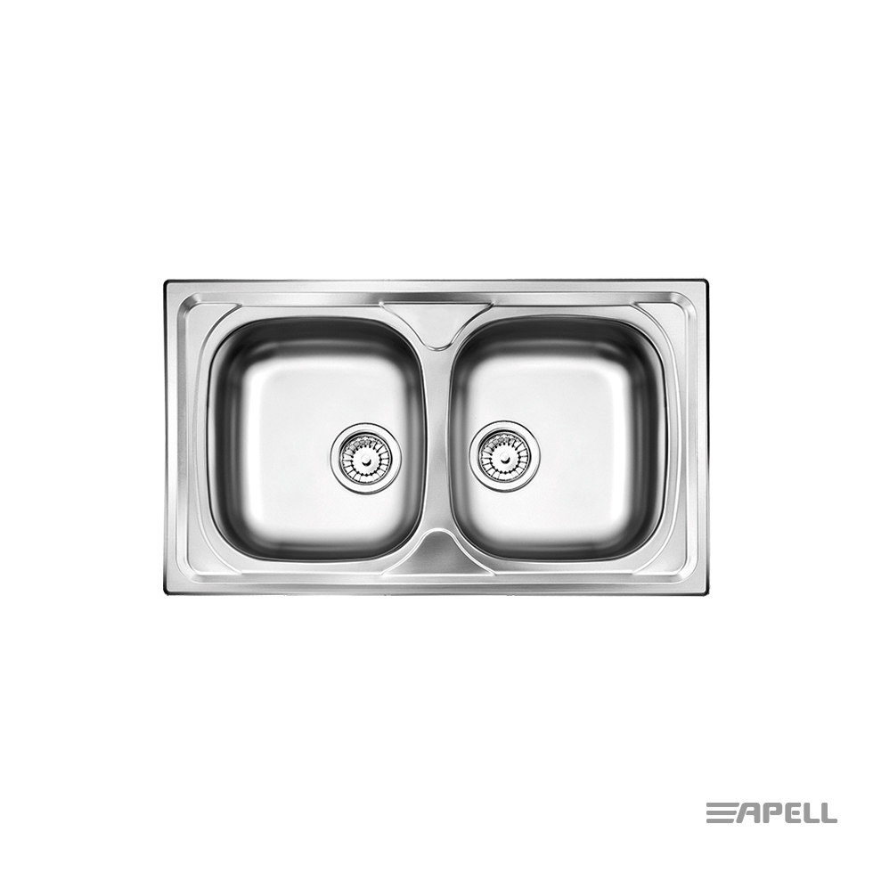 Νεροχύτης AREA ανοξείδωτος με 2 γούρνες, διάσταση 86×50 εκ., για ερμάριο 80εκ., APELL Ιταλίας