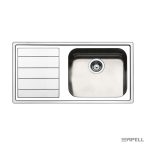 Νεροχύτης LINEAR ανοξείδωτος με 1 μεγαλη γούρνα και πάγκο εργασίας στα αριστερά, διάσταση 100×50 εκ., για ερμάριο 80εκ., APELL Ιταλίας