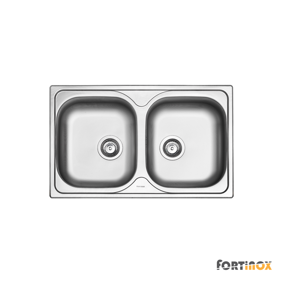Νεροχύτης ανοξείδωτος 80×50 εκ. με 2 γούρνες, για ερμάριο 80 εκ., της σειράς Valley, Fortinox