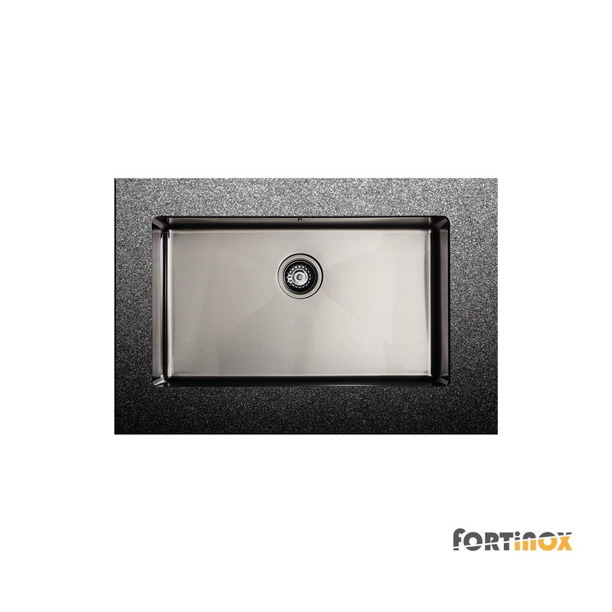 Νεροχύτης υποκαθήμενος από ανοξείδωτο χάλυβα AISI304 με επεξεργασία PVD. Διάσταση 74×44 εκ. με 1 γούρνα, για ερμάριο 80 εκ. Σειρά SQUADRO Fortinox