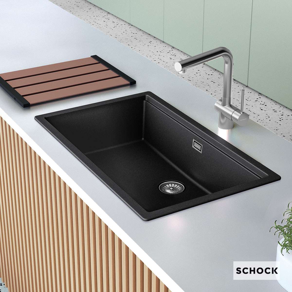 Νεροχύτης granite υποκαθήμενος MANHATTAN CRISTALITE 75×45,6 με 1 γούρνα για ερμάριο 80 εκ., SCHOCK Γερμανίας