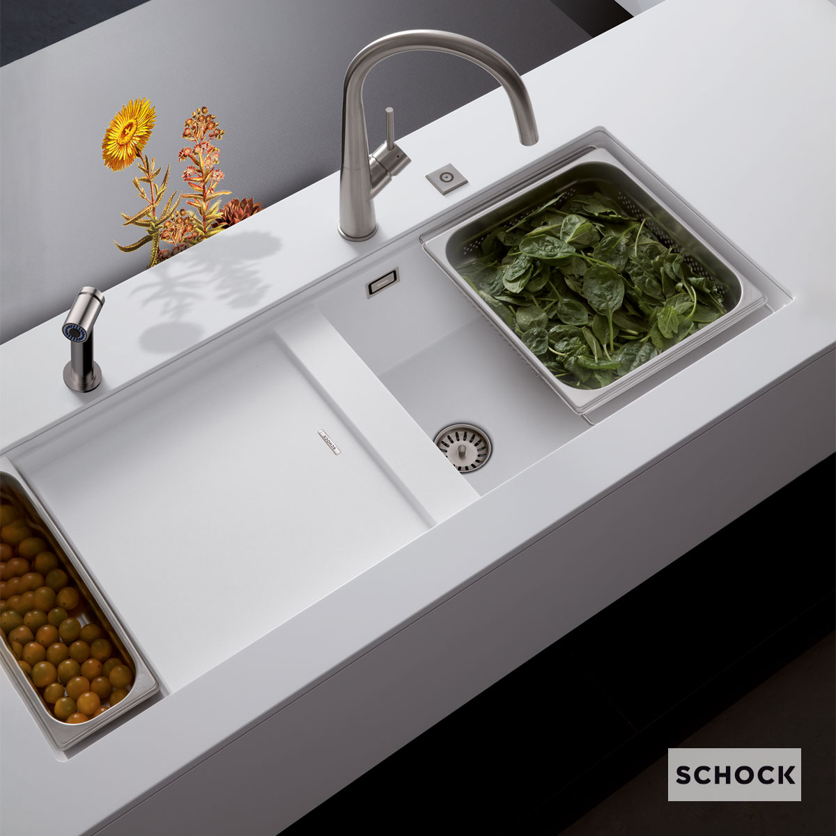 Νεροχύτης granite ένθετος PREPSTATION CRISTADUR 114×46 με 2 γούρνες και πάγκο εργασίας για ερμάριο 120 εκ., SCHOCK Γερμανίας