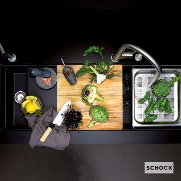 Νεροχύτης granite ένθετος PREPSTATION CRISTADUR 114×46 με 2 γούρνες και πάγκο εργασίας για ερμάριο 120 εκ., SCHOCK Γερμανίας