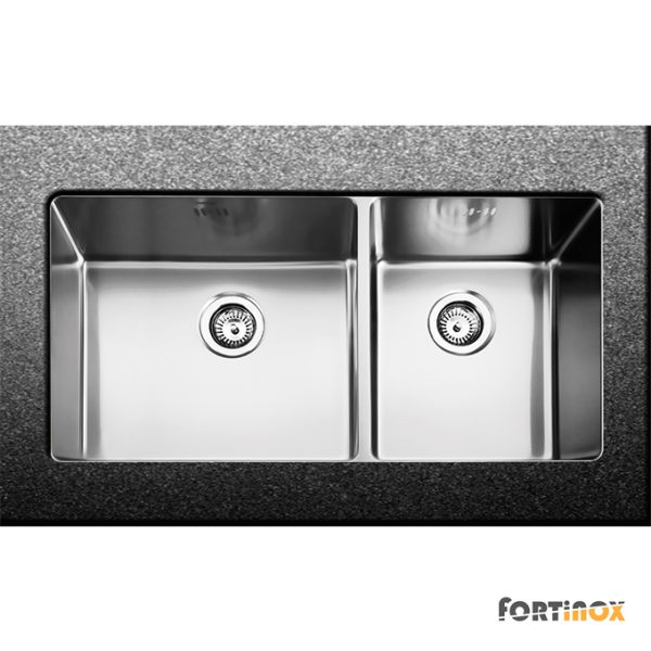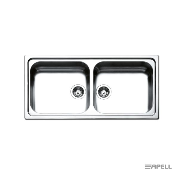 Νεροχύτης LINEAR ανοξείδωτος 100×50 εκ. με 2 όμοιες γούρνες, για ερμάριο 100 εκ., APELL Ιταλίας