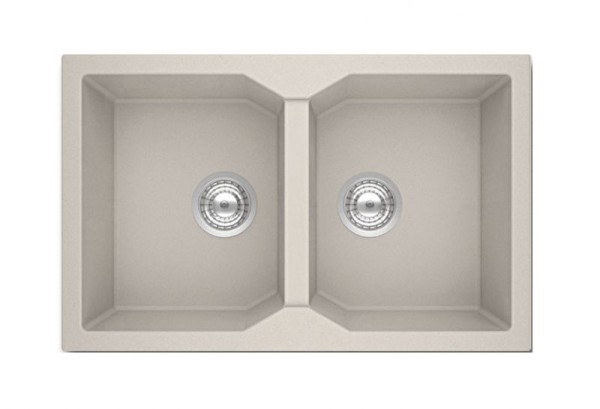 NODO νεροχύτης χρώματος λευκού ποιότητος ultra γρανίτη (80% ορυκτός χαλαζίας) διάστασης 79*50 με 2 γουρνες συνοδευεται από σιφωνια και βαλβιδα