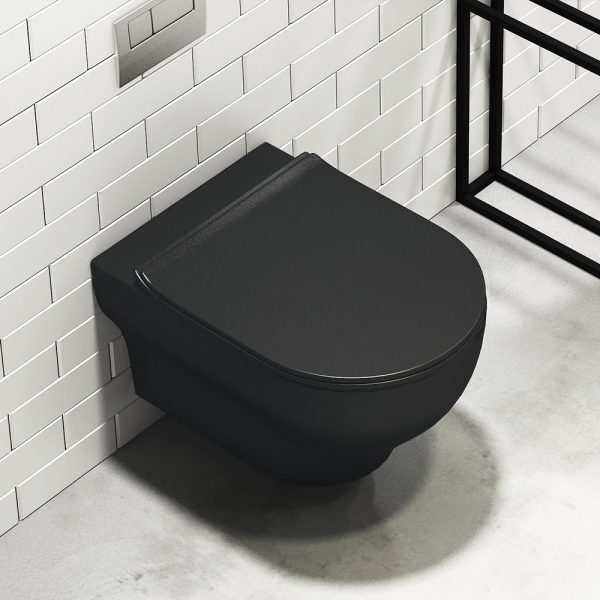 Olympia Clear Rimless Black Matt – Λεκάνη Κρεμαστή Με Κάλυμμα Urea Αntibacterial Slim Soft Close