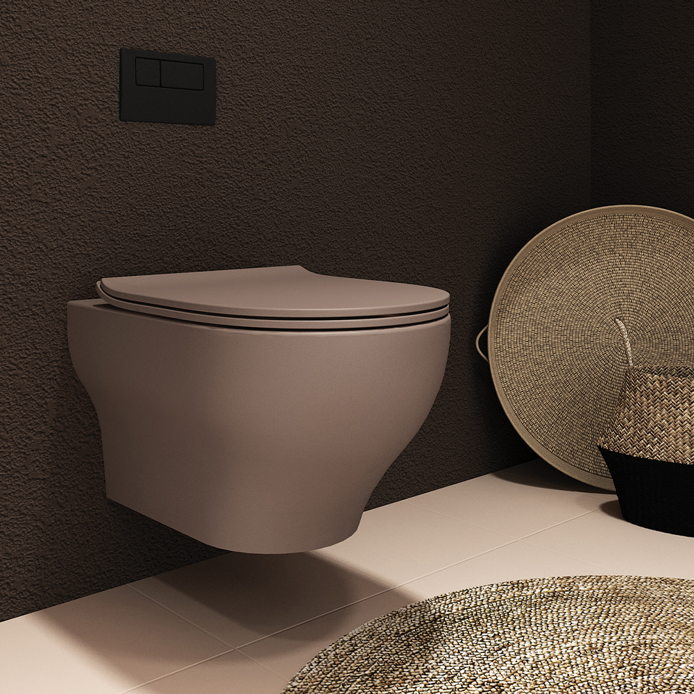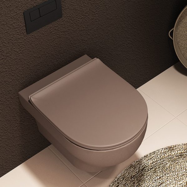 Olympia Clear Rimless Brown Matt – Λεκάνη Κρεμαστή Με Κάλυμμα Urea Αntibacterial Slim Soft Close