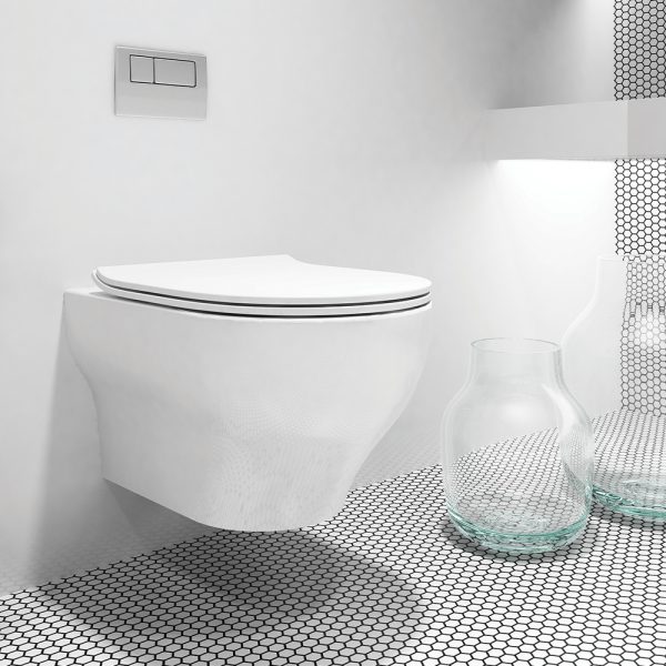 Olympia Clear Rimless White Glossy – Λεκάνη Κρεμαστή Με Κάλυμα Urea Αntibacterial Slim Soft Close