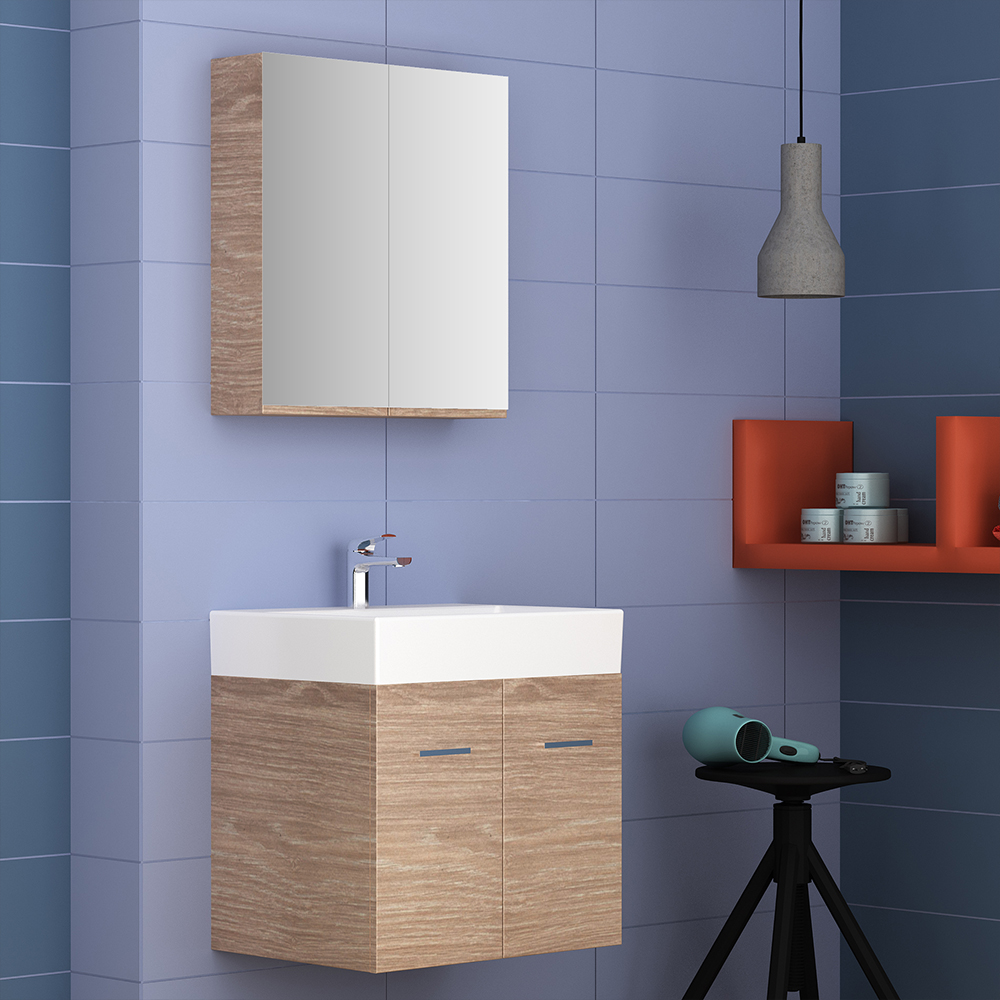 Orabella Amabile 60 – Κρεμαστό Έπιπλο Μπάνιου Με Πορσελάνινο Νιπτήρα Tecla Και Καθρέπτη Ντουλάπι
