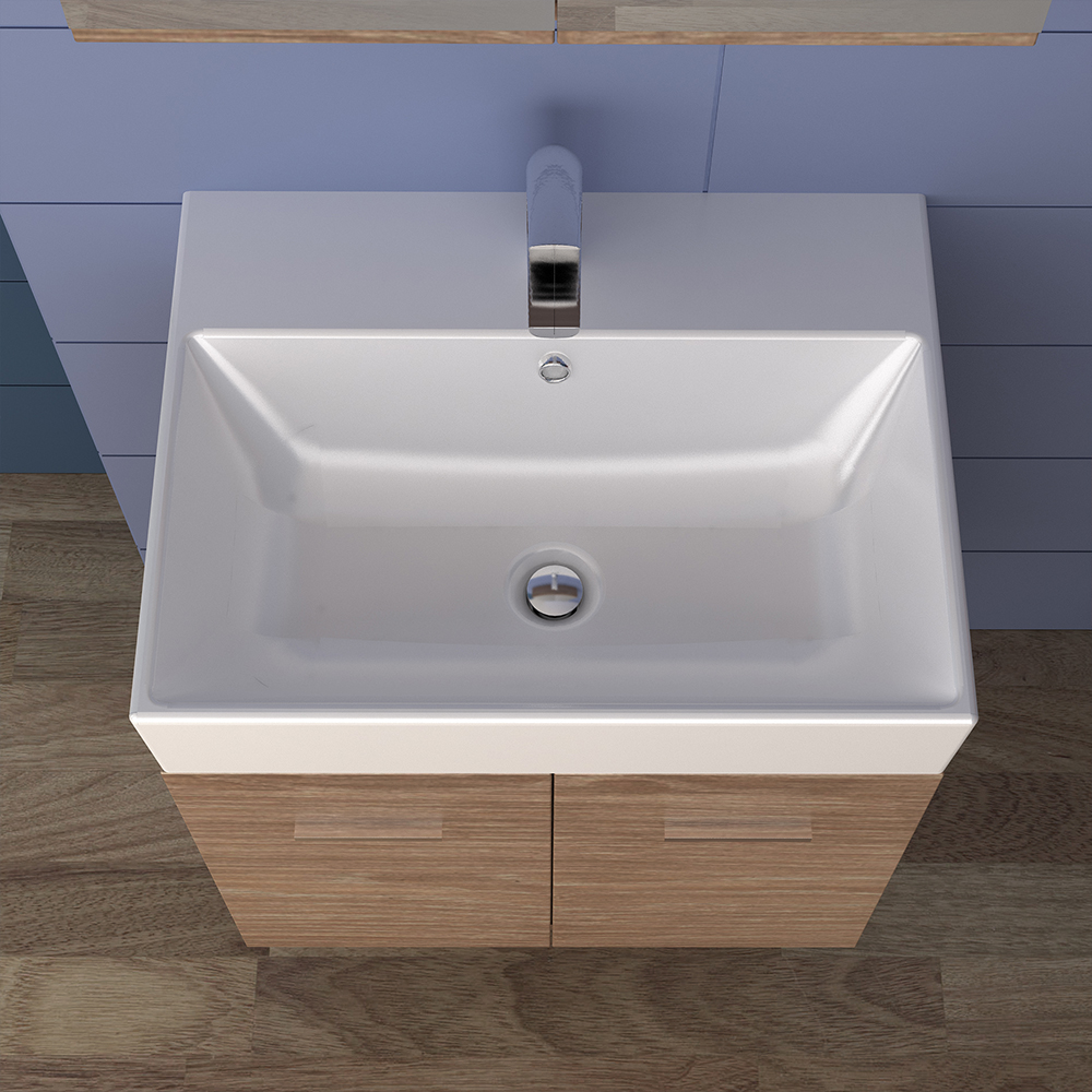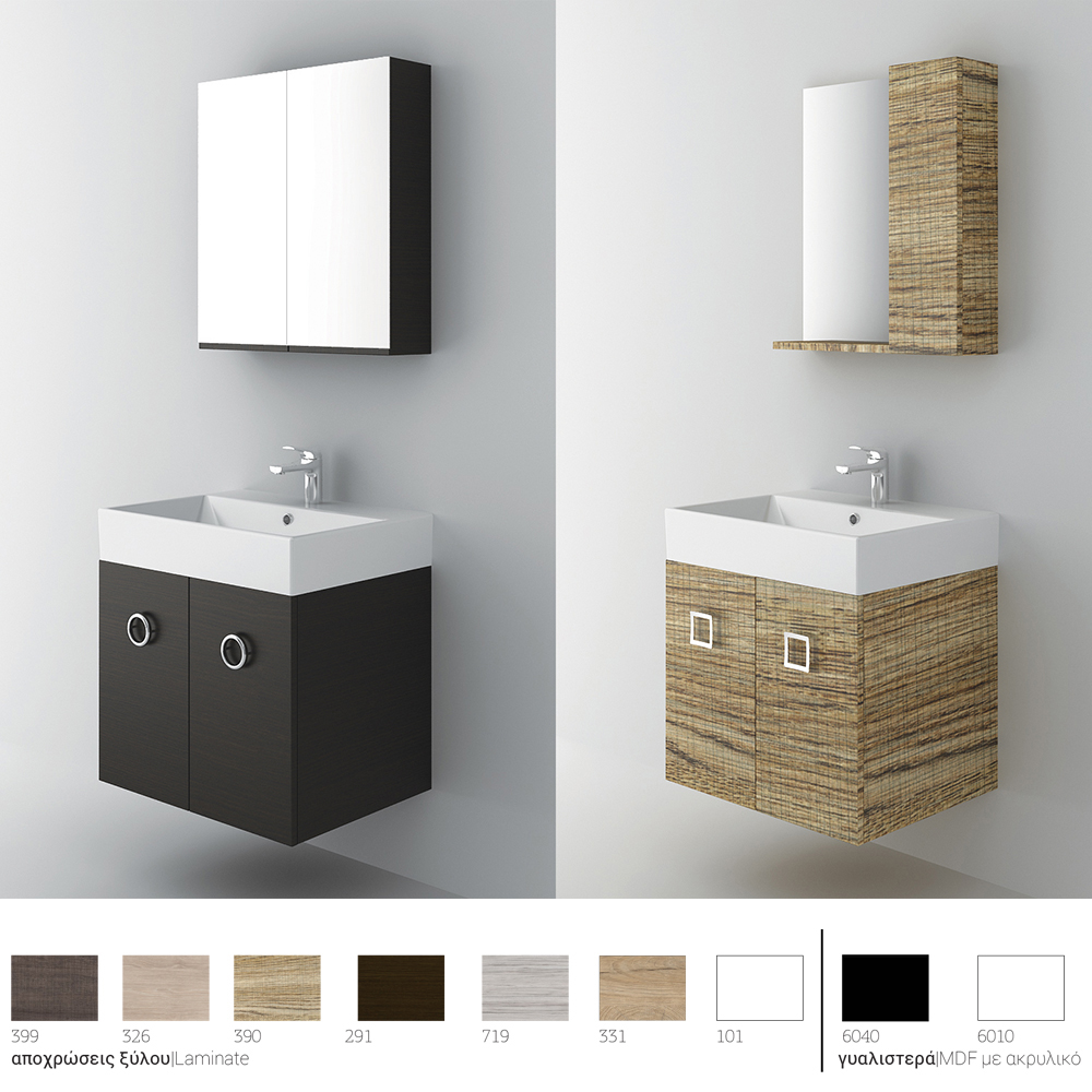 Κρεμαστό έπιπλο μπάνιου Amabile 60 – σειρά επίπλων Minimal. Ένα έπιπλο μπάνιου, βαρέως τύπου ιδανικό για οικιακή χρήση. Αποτελείται από, κρεμαστή βάση με δύο πόρτες με μηχανισμούς κλεισίματος soft close και νιπτήρα από πορσελάνη. Μπορείτε να ολοκληρώσετε την εικόνα του επίπλου προσθέτοντας καθρέπτη δικής σας επιλογής (ντουλάπι, εταζέρα με ντουλαπάκι ή καθρέπτη με πλαίσιο) και τα πόμολα που ταιριάζουν στο δικό σας μπάνιο. Όλα τα έπιπλα της εταιρείας Orabella μπορούν να πάρουν στήλες μπάνιου επιδαπέδιες ή κρεμαστές για επιπλέον χώρο αποθήκευσης, ενώ υπάρχει δυνατότητα προσθήκης ντουλαπιού πλυντηρίου σε χρώμα δικής σας επιλογής. Διατίθεται σε έξι διαφορετικές αποχρώσεις ξύλου και σε λευκό χρώμα-Laminate καθώς και σε μαύρο και λευκό γυαλιστερό και ματ ακρυλικό σε mdf. Κατόπιν επιλογής, μπορεί να συνοδευτεί με γραμμικό φωτιστικό μπάνιου Led.