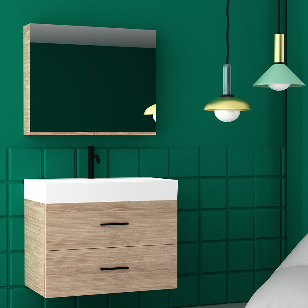 Orabella Amabile 80 Με Δύο Συρτάρια – Κρεμαστό Έπιπλο Μπάνιου Με Πορσελάνινο Νιπτήρα Tecla Και Καθρέπτη Ντουλάπι