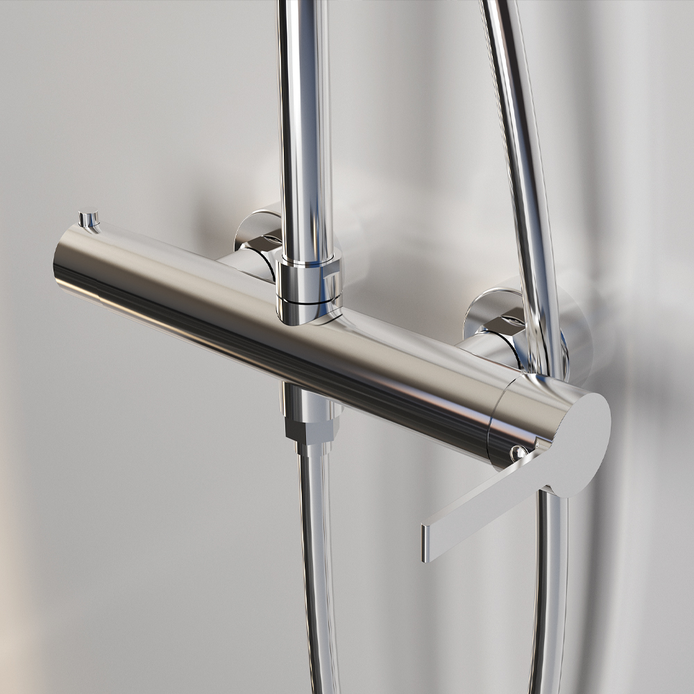 Στήλη ντουζ Elegance Column, ρυθμιζόμενου ύψους (81-118 cm) με κεφαλή από ανοξείδωτο ατσάλι, με ορειχάλκινη μπίλια Φ250. Ο διανομέας είναι κατασκευασμένος εξ ολοκλήρου από υψηλής ποιότητας ορείχαλκο. Συμπεριλαμβάνεται στήριγμά στον τοίχο ABS, τηλέφωνο 5-λειτουργιών και λείο σπιράλ τηλεφώνου (PVC) μήκους 150 εκατοστών. Διατίθεται σε χρωμέ και μαύρο ματ κατόπιν επιλογής.Ορειχάλκινη βέργα ντουζ με μπαταρία, σπιράλ βαρέως τύπου σύμφωνα με τα standards DVGW, κατάλληλο για πόσιμο νερό και με μεγάλη αντοχή σε αυξομειώσεις της πίεσης. Γόνατα (connectors) βαρέως τύπου που σας γλυτώνουν από διαρροές που μπορούν να προκληθούν από υψηλή πίεση του νερού. Οικονομία στο νερό μέχρι και 30% σε σχέση με τις κοινές μπαταρίες χάρη στον ειδικό σχεδιασμό και το φίλτρο της μπαταρίας. Πολύ χαμηλό επίπεδο θορύβου κατά τη χρήση. Όλα τα επιμέρους υλικά κατασκευής, όπως λάστιχα, φλάντζες, μηχανισμοί είναι πιστοποιημένα και κατάλληλα για πόσιμο νερό. Συνοδεύεται από 5-ετή γραπτή εργοστασιακή εγγύηση και υποστηρίζεται από πλήρη γκάμα ανταλλακτικών.