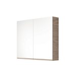 Καθρέπτης – ντουλάπι μπάνιου ο οποίος διαθέτει δύο εσωτερικά αποσπώμενα ράφια και δύο συμμετρικές πόρτες. Διατίθεται σε έξι διαφορετικές αποχρώσεις ξύλου και σε λευκό χρώμα Laminate καθώς και σε μαύρο και λευκό γυαλιστερό και ματ ακρυλικό σε mdf.