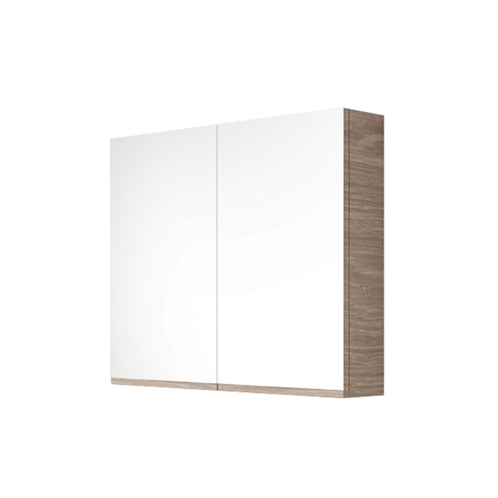 Καθρέπτης – ντουλάπι μπάνιου ο οποίος διαθέτει δύο εσωτερικά αποσπώμενα ράφια και δύο συμμετρικές πόρτες. Διατίθεται σε έξι διαφορετικές αποχρώσεις ξύλου και σε λευκό χρώμα Laminate καθώς και σε μαύρο και λευκό γυαλιστερό και ματ ακρυλικό σε mdf.