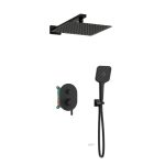 Orabella Marea Black matt – Shower set εντοιχισμού με Μπαταρία λουτρού, εντοιχισμού 2 σημείων, κεφαλή 250×250 με βραχίονα και τηλέφωνο ντουζ με σπιράλ και επιτοίχειο στήριγμα