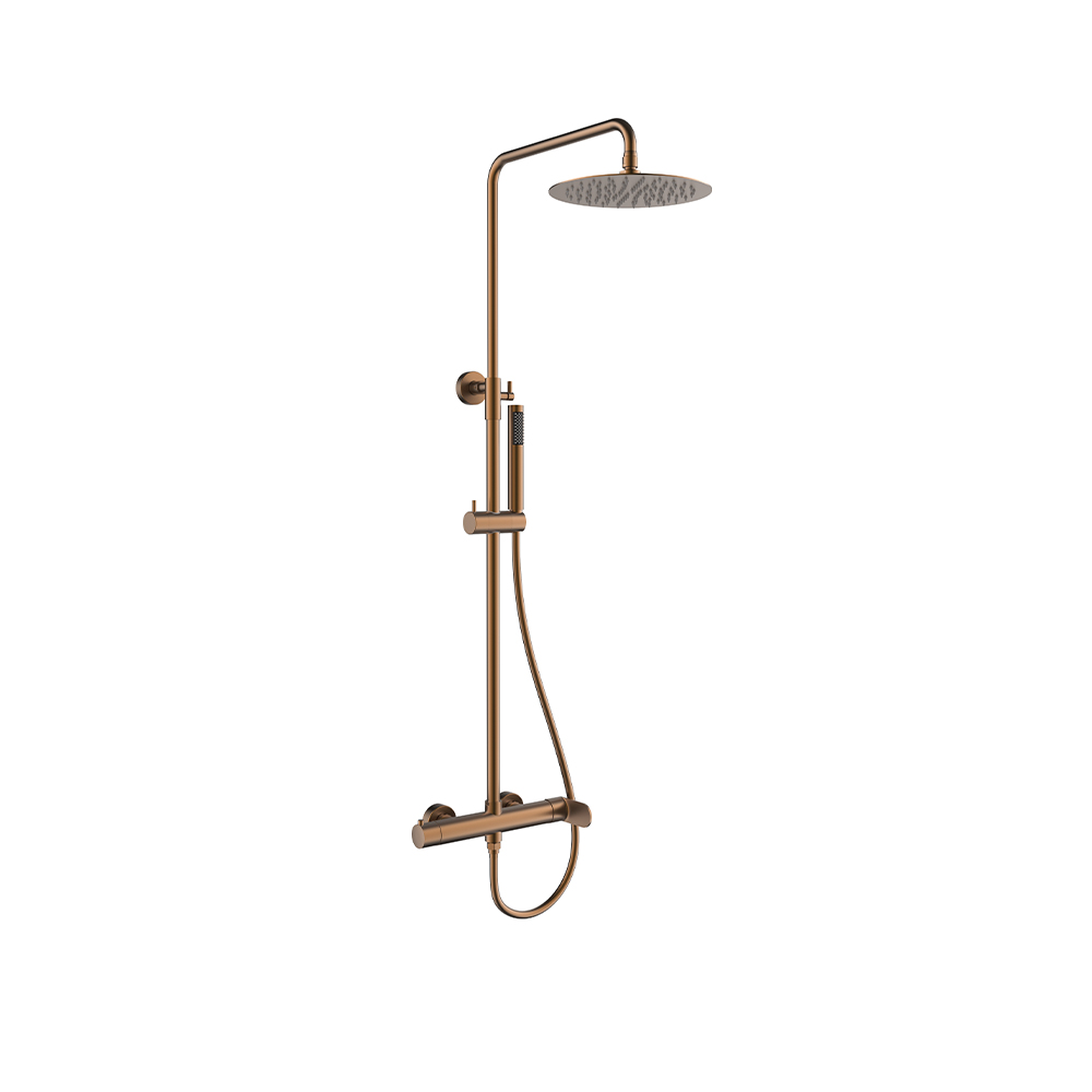 Στήλη ντουζ Oval Column, ρυθμιζόμενου ύψους (81-118 cm) με κεφαλή από ανοξείδωτο ατσάλι, με ορειχάλκινη μπίλια Φ250. Ο διανομέας είναι κατασκευασμένος εξ ολοκλήρου από υψηλής ποιότητας ορείχαλκο. Συμπεριλαμβάνεται στήριγμά στον τοίχο ABS, μεταλλικό τηλέφωνο και λείο σπιράλ τηλεφώνου (PVC) μήκους 150 εκατοστών. Διατίθεται σε πέντε διαφορετικά χρώματα: χρωμέ, μαύρο ματ, ροζ χρυσό, χρυσό και gun metal.