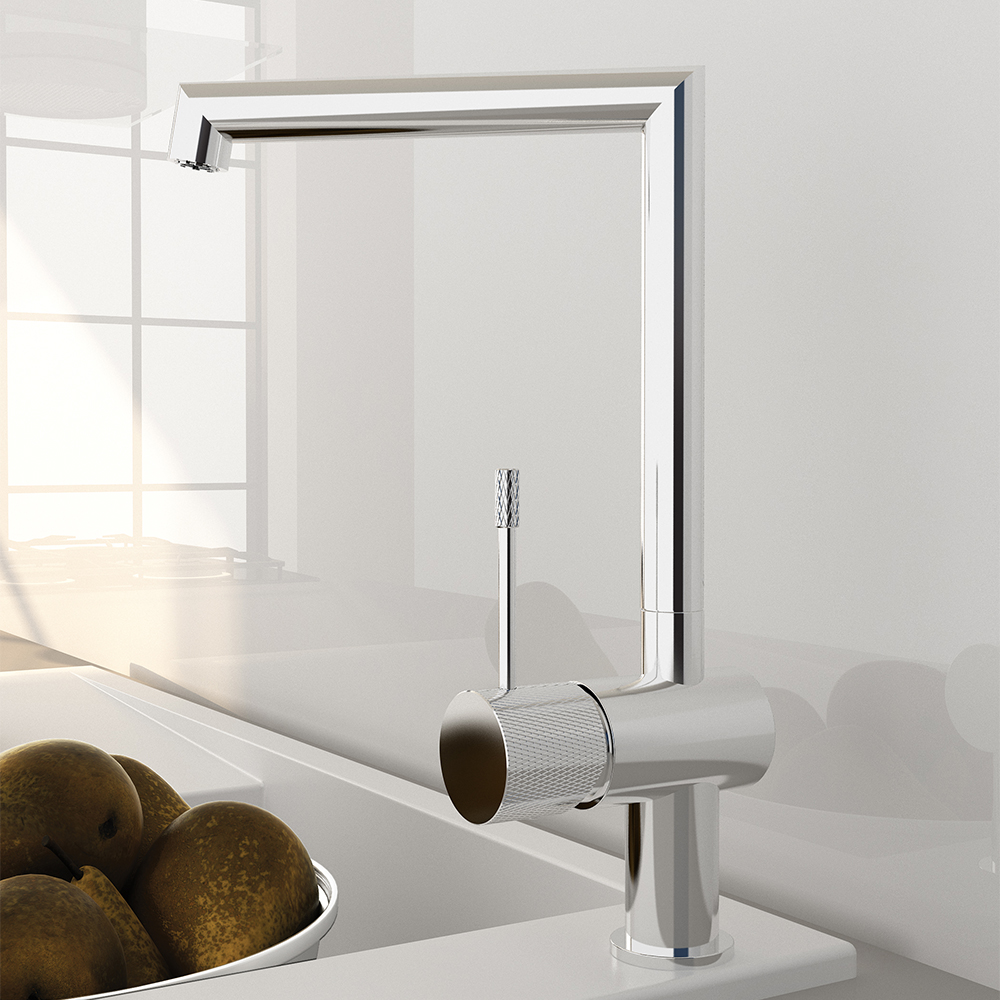 Μπαταρία κουζίνας Orabella, Siena με περιστρεφόμενο κορμό. Πρόκειται για μια μοντέρνα μπαταρία πάγκου, η οποία είναι κατασκευασμένη από τον οίκο Orabella, από υψηλής ποιότητας ορείχαλκο. Διατίθεται σε δύο χρωματικές επιλογές: χρωμέ και μαύρο ματ.
