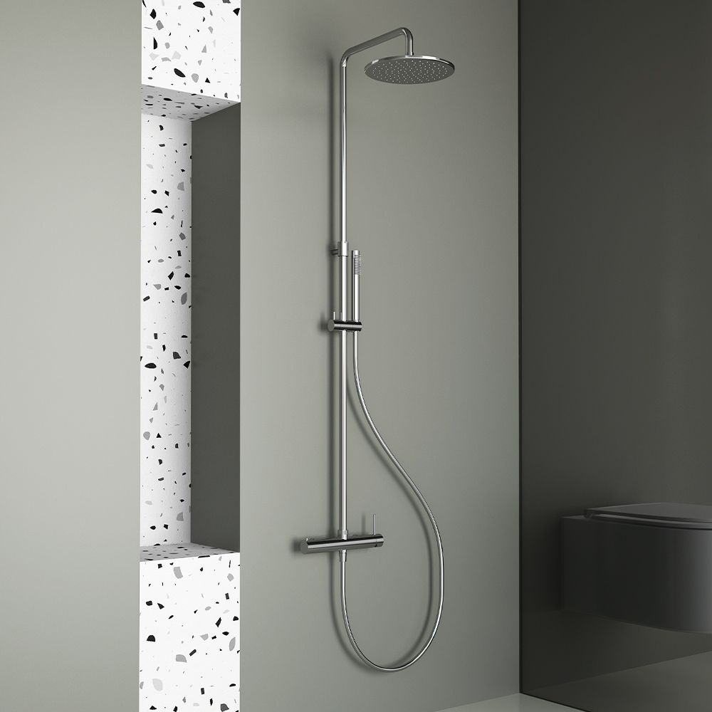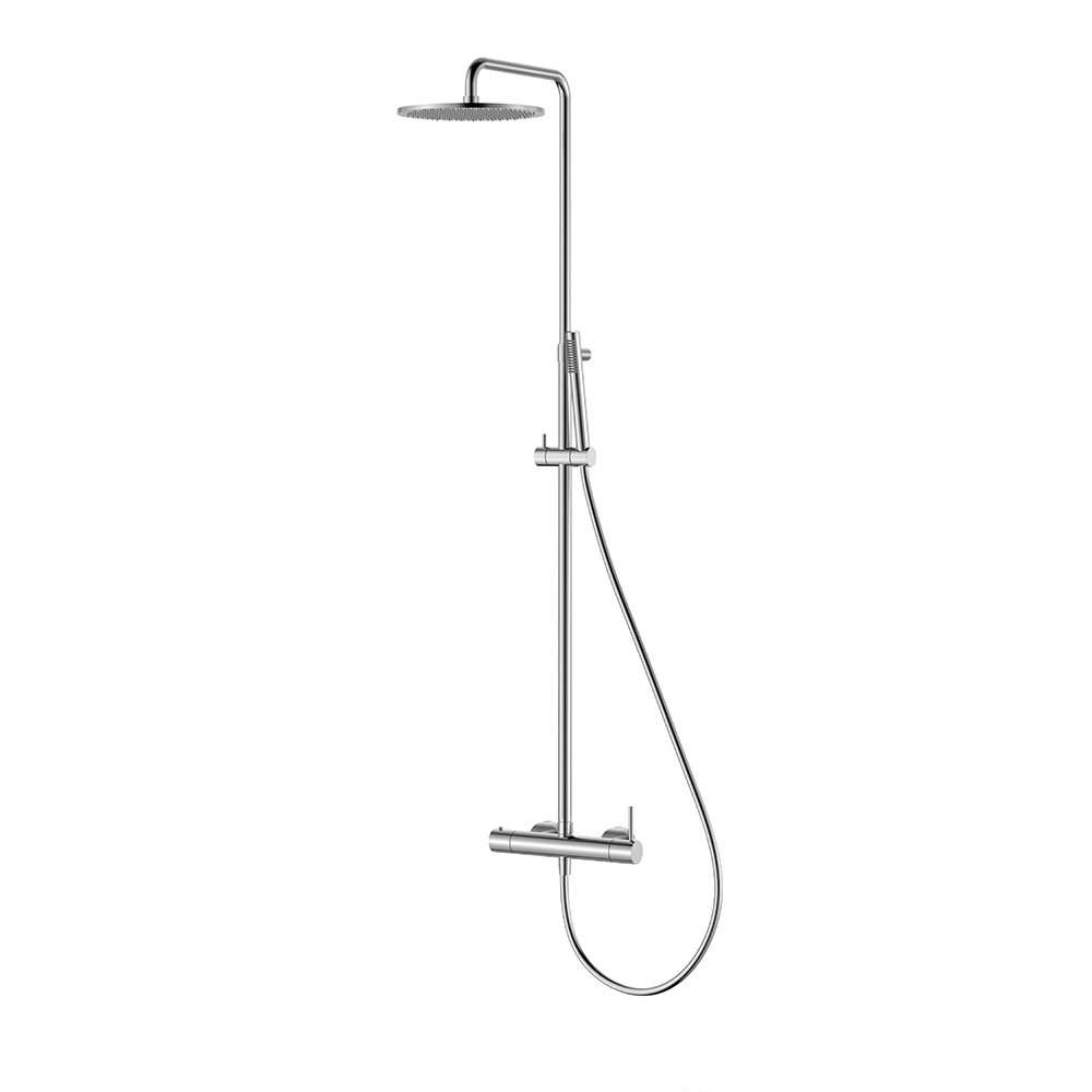 Στήλη ντουζ Steel 316 Column, ρυθμιζόμενου ύψους (96.5-138.5 cm) με κεφαλή από ανοξείδωτο ατσάλι Φ250. Ο διανομέας είναι κατασκευασμένος εξ ολοκλήρου από υψηλής ποιότητας ανοξείδωτο ατσάλι (316). Συμπεριλαμβάνεται μεταλλικό τηλέφωνο και λείο σπιράλ τηλεφώνου (PVC) μήκους 150 εκατοστών.Ορειχάλκινη βέργα ντουζ με μπαταρία, σπιράλ βαρέως τύπου σύμφωνα με τα standards DVGW, κατάλληλο για πόσιμο νερό και με μεγάλη αντοχή σε αυξομειώσεις της πίεσης. Γόνατα (connectors) βαρέως τύπου που σας γλυτώνουν από διαρροές που μπορούν να προκληθούν από υψηλή πίεση του νερού. Οικονομία στο νερό μέχρι και 30% σε σχέση με τις κοινές μπαταρίες χάρη στον ειδικό σχεδιασμό και το φίλτρο της μπαταρίας. Πολύ χαμηλό επίπεδο θορύβου κατά τη χρήση. Άριστη ποιότητα επινικέλωσης 5 στρωμάτων, που εγγυάται ευκολία στο καθάρισμα και λάμψη για πολλά χρόνια χρήσης. Όλα τα επιμέρους υλικά κατασκευής, όπως λάστιχα, φλάντζες, μηχανισμοί είναι πιστοποιημένα και κατάλληλα για πόσιμο νερό. Συνοδεύεται από 5-ετή γραπτή εργοστασιακή εγγύηση και υποστηρίζεται από πλήρη γκάμα ανταλλακτικών.