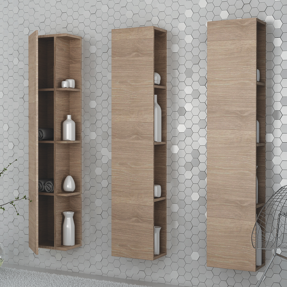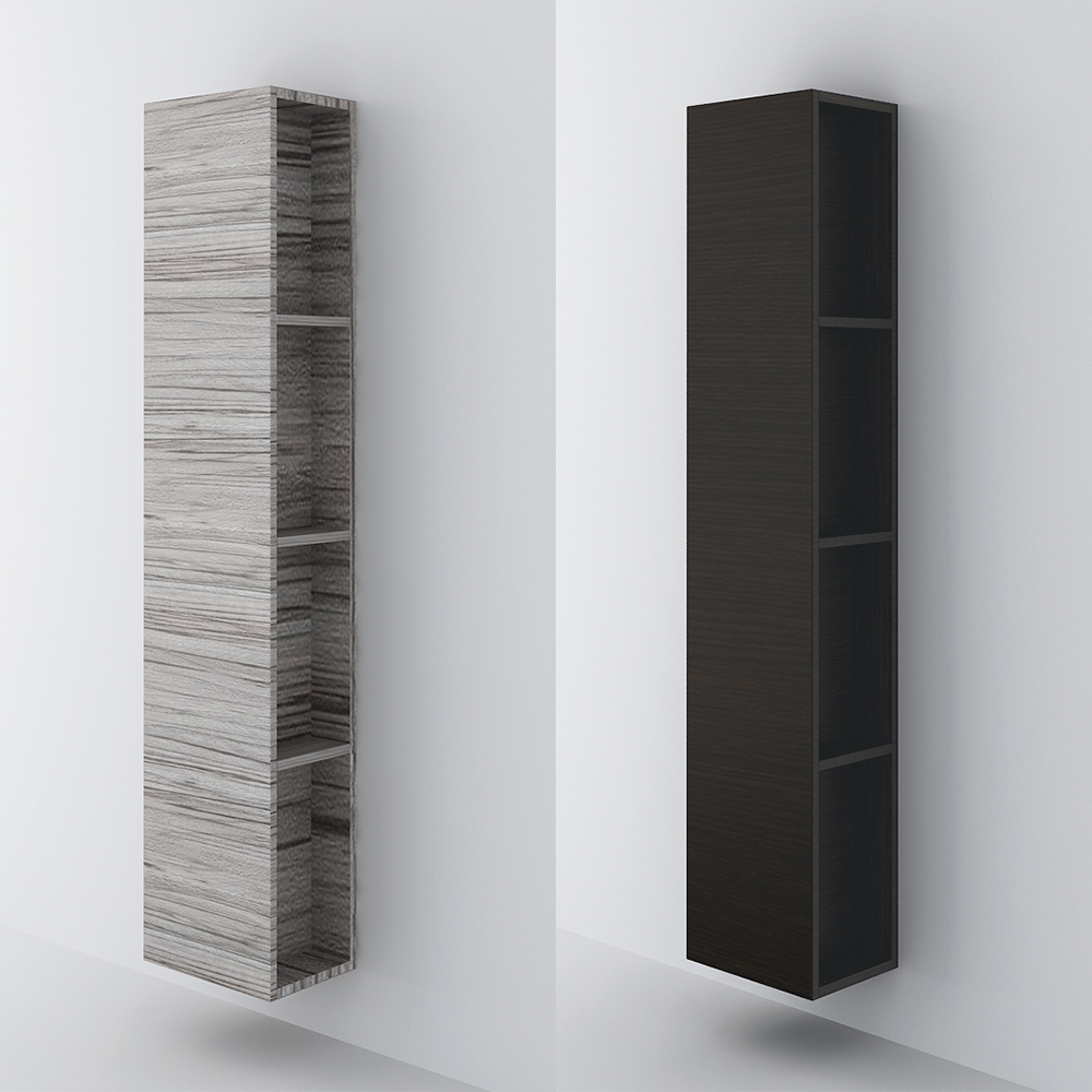 Totem αντιστρέψιμη, κρεμαστή στήλη μπάνιου, η οποία διαθέτει τέσσερα, εξωτερικά πλαϊνά ράφια και ένα ντουλάπι με ενιαία πόρτα με μηχανισμό κλεισίματος soft close, που φέρει την υπογραφή της BLUM. Διατίθεται σε έξι διαφορετικές αποχρώσεις ξύλου και σε λευκό χρώμα Laminate καθώς και σε μαύρο και λευκό γυαλιστερό και ματ ακρυλικό σε mdf. Η Totem μπορεί να μετατραπεί και σε επιδαπέδια στήλη αν επιλέξετε τα αντίστοιχα ποδαράκια στήριξης.