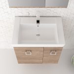 Κρεμαστό έπιπλο μπάνιου Vanity 65 – σειρά επίπλων Alternative. Ένα έπιπλο μπάνιου, βαρέως τύπου ιδανικό για οικιακή χρήση. Αποτελείται από, κρεμαστή βάση με δύο πόρτες με μηχανισμούς κλεισίματος soft close και νιπτήρα από πορσελάνη. Η βάση διατίθεται και σε επιδαπέδια (Vanity 65 Long). Μπορείτε να ολοκληρώσετε την εικόνα του επίπλου προσθέτοντας καθρέπτη δικής σας επιλογής (ντουλάπι, εταζέρα με ντουλαπάκι ή καθρέπτη με πλαίσιο) και τα πόμολα που ταιριάζουν στο δικό σας μπάνιο. Όλα τα έπιπλα της εταιρείας Orabella μπορούν να πάρουν στήλες μπάνιου επιδαπέδιες ή κρεμαστές για επιπλέον χώρο αποθήκευσης, ενώ υπάρχει δυνατότητα προσθήκης ντουλαπιού πλυντηρίου σε χρώμα δικής σας επιλογής. Διατίθεται σε έξι διαφορετικές αποχρώσεις ξύλου και σε λευκό χρώμα- Laminate καθώς και σε μαύρο και λευκό γυαλιστερό και ματ ακρυλικό σε mdf. Κατόπιν επιλογής, μπορεί να συνοδευτεί με γραμμικό φωτιστικό μπάνιου Led.