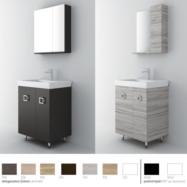 Επιδαπέδιο έπιπλο μπάνιου Vanity 65 Long – σειρά επίπλων Alternative. Ένα έπιπλο μπάνιου, βαρέως τύπου ιδανικό για οικιακή χρήση. Αποτελείται από, επιδαπέδια βάση με δύο πόρτες με μηχανισμούς κλεισίματος soft close και νιπτήρα από πορσελάνη. Μπορείτε να ολοκληρώσετε την εικόνα του επίπλου προσθέτοντας καθρέπτη δικής σας επιλογής (ντουλάπι, εταζέρα με ντουλαπάκι ή καθρέπτη με πλαίσιο) και τα πόμολα που ταιριάζουν στο δικό σας μπάνιο. Όλα τα έπιπλα της εταιρείας Orabella μπορούν να πάρουν στήλες μπάνιου επιδαπέδιες ή κρεμαστές για επιπλέον χώρο αποθήκευσης, ενώ υπάρχει δυνατότητα προσθήκης ντουλαπιού πλυντηρίου σε χρώμα δικής σας επιλογής. Διατίθεται σε έξι διαφορετικές αποχρώσεις ξύλου και σε λευκό χρώμα- Laminate καθώς και σε μαύρο και λευκό γυαλιστερό και ματ ακρυλικό σε mdf. Κατόπιν επιλογής, μπορεί να συνοδευτεί με γραμμικό φωτιστικό μπάνιου Led.Υλικό επίπλου μελαμίνη με PVC για μεγαλύτερη αντοχή στο χρόνο και σε μεγάλη γκάμα χρωματικών επιλογών. Χρήση μηχανισμών κλεισίματος soft close, που φέρουν την υπογραφή της κορυφαίας εταιρείας BLUM. Διατίθεται με ασύμμετρο ντουλάπι καθρέπτη με δύο πόρτες ή με καθρέπτη εταζέρα που μπορεί να πλαισιωθεί από ένα πρόσθετο ντουλάπι 25 εκατοστών. Ο καθρέπτης Infinity αποτελεί μια τρίτη επιλογή χωρίς αποθηκευτικό χώρο. Ο τελευταίος βγαίνει μόνο σε αποχρώσεις ξύλου Laminate. Συμπεριλαμβάνονται στη βάση δύο, χρωμέ λαβές επίπλων, δικής σας επιλογής σε τρία σχέδια (M1, M4, M5). Ενώ υπάρχει δυνατότητα προσθήκης στο πακέτο μαύρων ματ γραμμικών λαβών κατόπιν επιλογής (Μ1). Ομοίως μπορείτε να συνδυάσετε φωτιστικό επίπλου σε χρωμέ ή μαύρη απόχρωση. Η συνολική σύνθεση του επίπλου αποστέλλεται συναρμολογημένη σε 3 τεμάχια (βάση, νιπτήρας και καθρέπτης) και σε περίπτωση που επιλέξετε στήλες μπάνιου για να αυξήσετε τους αποθηκευτικούς χώρους στο μπάνιο σας, αυτές παραδίδονται συναρμολογημένες. Κατόπιν επιλογής, η σύνθεση μπορεί να συνοδευτεί με γραμμικό φωτιστικό μπάνιου Led 40 ή 60 εκατοστά ισχύος 8 και 12 watt αντιστοίχως, σε χρωμέ ή και μαύρο ματ χρώμα. Στην τιμή του νιπτήρα δεν συμπεριλαμβάνεται η μπαταρία και η βαλβίδα του νιπτήρα, μπορείτε να προσθέσετε ορειχάλκινη, βαλβίδα κλικ-κλακ για νιπτήρες με υπερχείλιση. Ομοίως μπορείτε να προσθέσετε μπαταρία νιπτήρος που φέρει την υπογραφή κορυφαίων εταιρειών στο σχεδιασμό ειδών υγιεινής, όπως Pentagono, Orabella by Armando Vicario και Orabella.