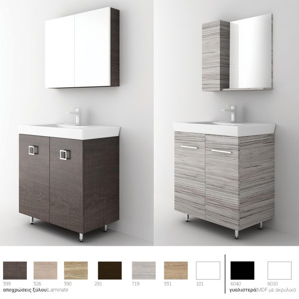 Επιδαπέδιο έπιπλο μπάνιου Vanity 80 Long – σειρά επίπλων Alternative. Ένα έπιπλο μπάνιου, βαρέως τύπου ιδανικό για οικιακή χρήση. Αποτελείται από, επιδαπέδια βάση με δύο πόρτες με μηχανισμούς κλεισίματος soft close και νιπτήρα από πορσελάνη. Μπορείτε να ολοκληρώσετε την εικόνα του επίπλου προσθέτοντας καθρέπτη δικής σας επιλογής (ντουλάπι, εταζέρα με ντουλαπάκια ή καθρέπτη με πλαίσιο) και τα πόμολα που ταιριάζουν στο δικό σας μπάνιο. Όλα τα έπιπλα της εταιρείας Orabella μπορούν να πάρουν στήλες μπάνιου επιδαπέδιες ή κρεμαστές για επιπλέον χώρο αποθήκευσης, ενώ υπάρχει δυνατότητα προσθήκης ντουλαπιού πλυντηρίου σε χρώμα δικής σας επιλογής. Διατίθεται σε έξι διαφορετικές αποχρώσεις ξύλου και σε λευκό χρώμα-Laminate καθώς και σε μαύρο και λευκό γυαλιστερό ακρυλικό σε mdf. Κατόπιν επιλογής, μπορεί να συνοδευτεί με γραμμικό φωτιστικό μπάνιου Led.Υλικό επίπλου μελαμίνη με PVC για μεγαλύτερη αντοχή στο χρόνο και σε μεγάλη γκάμα χρωματικών επιλογών. Χρήση μηχανισμών κλεισίματος soft close, που φέρουν την υπογραφή της κορυφαίας εταιρείας BLUM. Διατίθεται με ντουλάπι καθρέπτη με δύο πόρτες ή με καθρέπτη εταζέρα που μπορεί να πλαισιωθεί από δύο πρόσθετα ντουλάπια 20 εκατοστών. Ο καθρέπτης Infinity αποτελεί μια τρίτη επιλογή χωρίς αποθηκευτικό χώρο. Ο τελευταίος βγαίνει μόνο σε αποχρώσεις ξύλου Laminate. Συμπεριλαμβάνονται στη βάση δύο, χρωμέ λαβές επίπλων, δικής σας επιλογής σε τρία σχέδια (M1, M4, M5). Ενώ υπάρχει δυνατότητα προσθήκης στο πακέτο μαύρων ματ γραμμικών λαβών, κατόπιν επιλογής (Μ1). Επιπλέον, μπορείτε να συνδυάσετε φωτιστικό επίπλου σε χρωμέ ή μαύρη απόχρωση. Η συνολική σύνθεση του επίπλου αποστέλλεται συναρμολογημένη σε 3 τεμάχια (βάση, νιπτήρας και καθρέπτης) και σε περίπτωση που επιλέξετε στήλες μπάνιου για να αυξήσετε τους αποθηκευτικούς χώρους στο μπάνιο σας, αυτές παραδίδονται συναρμολογημένες. Κατόπιν επιλογής, η σύνθεση μπορεί να συνοδευτεί με γραμμικό φωτιστικό μπάνιου Led 40 ή 60 εκατοστά ισχύος 8 και 12 watt αντιστοίχως, σε χρωμέ ή και μαύρο ματ χρώμα. Στην τιμή του νιπτήρα δεν συμπεριλαμβάνεται η μπαταρία και η βαλβίδα του νιπτήρα, μπορείτε να προσθέσετε ορειχάλκινη, βαλβίδα κλικ-κλακ για νιπτήρες με υπερχείλιση. Ομοίως μπορείτε να προσθέσετε μπαταρία νιπτήρος που φέρει την υπογραφή κορυφαίων εταιρειών στο σχεδιασμό ειδών υγιεινής, όπως Pentagono, Orabella by Armando Vicario και Orabella.