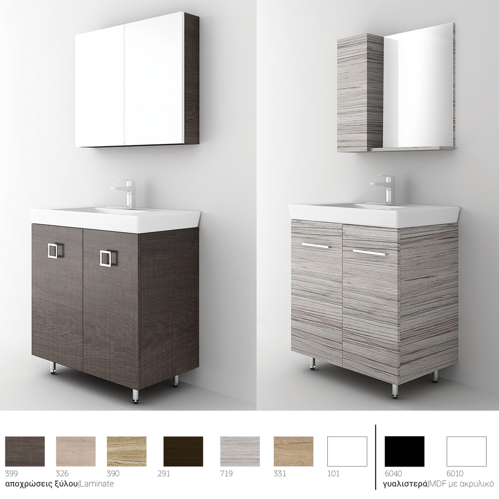 Επιδαπέδιο έπιπλο μπάνιου Vanity 80 Long – σειρά επίπλων Alternative. Ένα έπιπλο μπάνιου, βαρέως τύπου ιδανικό για οικιακή χρήση. Αποτελείται από, επιδαπέδια βάση με δύο πόρτες με μηχανισμούς κλεισίματος soft close και νιπτήρα από πορσελάνη. Μπορείτε να ολοκληρώσετε την εικόνα του επίπλου προσθέτοντας καθρέπτη δικής σας επιλογής (ντουλάπι, εταζέρα με ντουλαπάκια ή καθρέπτη με πλαίσιο) και τα πόμολα που ταιριάζουν στο δικό σας μπάνιο. Όλα τα έπιπλα της εταιρείας Orabella μπορούν να πάρουν στήλες μπάνιου επιδαπέδιες ή κρεμαστές για επιπλέον χώρο αποθήκευσης, ενώ υπάρχει δυνατότητα προσθήκης ντουλαπιού πλυντηρίου σε χρώμα δικής σας επιλογής. Διατίθεται σε έξι διαφορετικές αποχρώσεις ξύλου και σε λευκό χρώμα-Laminate καθώς και σε μαύρο και λευκό γυαλιστερό ακρυλικό σε mdf. Κατόπιν επιλογής, μπορεί να συνοδευτεί με γραμμικό φωτιστικό μπάνιου Led.