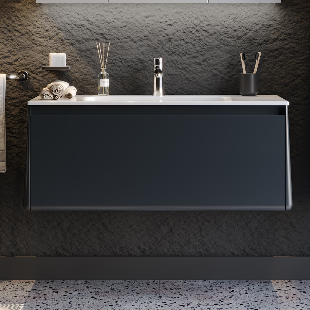 Πάγκος BELLA Ανθρακί MDF 18mm Λάκα 100 S3BBEL100ANM 101×46.5x46cm Αποτελείται από: Πάγκος BELLA Ανθρακί 10 0 κρεμαστός σε ματ λάκα και υλικό mdf. Διαθέτει μεγάλο ερμάριο για την τοποθέτηση και οργάνωση αντικειμένων . Νιπτήρας κεραμικός χρώματος λευκού, κορυφαίας κατασκευής και υψηλής αισθητικής. Διαθέτει οπή υπερχείλισης. Ματ λάκα 2 συστατικών σε MDF. Ο Πάγκος BELLA Ανθρακί απόχρωση αποτελεί ένα στυλάτο και μοντέρνο κομμάτι με εργονομικό σχεδιασμό αλλά και λειτουργικότητα. Προσαρμόζεται σε κάθε τύπο μπάνιου. •Πρακτικοί αποθηκευτικοί χώροι •Μηχανισμοί για απαλό και αθόρυβο κλείσιμο •Εύκολη τοποθέτηση •Ετοιμοπαράδοτα προϊόντα Δεν συμπεριλαμβάνονται η μπαταρία και τα διακοσμητικά. Διατίθεται έτοιμο συναρμολογημένο.