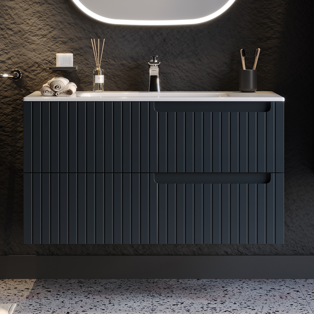 Πάγκος ENZA Ανθρακί MDF 18mm Λάκα 100 S3BENZA100AN 101×46.5x52cm Αποτελείται από: Πάγκος ENZA Λευκό 10 0 κρεμαστός σε υλικό MDF. Διαθέτει δύο συρτάρια για την τοποθέτηση και οργάνωση αντικειμένων. Νιπτήρας πορσελάνης χρώματος λευκού, κορυφαίας κατασκευής και υψηλής αισθητικής. Διαθέτει οπή υπερχείλισης. Ματ λάκα 2 συστατικών σε MDF. Ο Πάγκος ENZA Ανθρακί απόχρωση αποτελεί ένα στυλάτο και μοντέρνο κομμάτι με εργονομικό σχεδιασμό αλλά και λειτουργικότητα. Προσαρμόζεται σε κάθε τύπο μπάνιου. •Πρακτικοί αποθηκευτικοί χώροι •Μηχανισμοί για απαλό και αθόρυβο κλείσιμο •Εύκολη τοποθέτηση •Ετοιμοπαράδοτα προϊόντα Δεν συμπεριλαμβάνονται η μπαταρία και τα διακοσμητικά. Διατίθεται έτοιμο συναρμολογημένο.