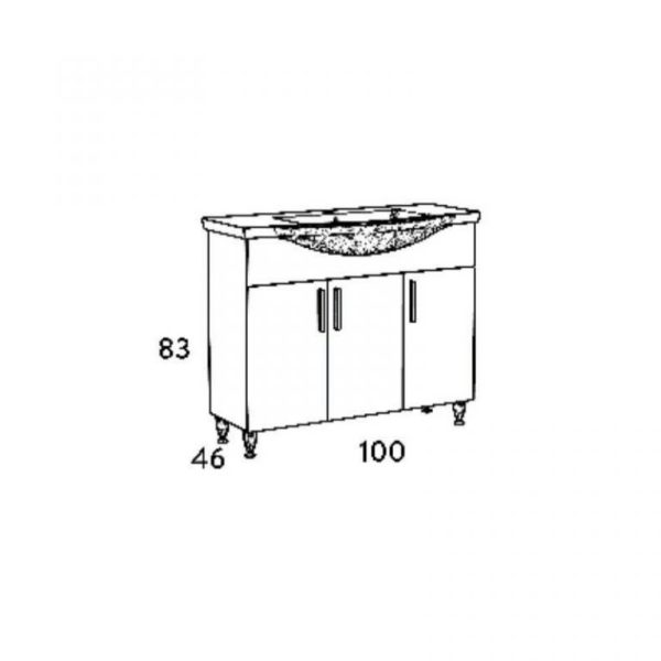 Πάγκος Siena White 100 S3Bsi100Gl0 96X34X83Cm, Νιπτήρας 100X46Cm