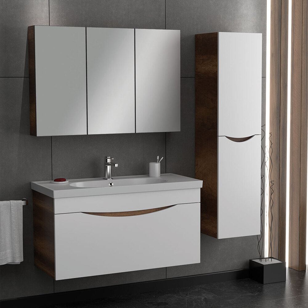 Πάγκος SMILE Λευκό / Barok MDF 18mm Λάκα 100 S3BSMIL100WB 100×45.5×54.5cm Αποτελείται από: Πάγκος SMILE 100 κρεμαστός σε ματ λάκα και υλικό MDF. Διαθέτει μεγάλο ερμάριο για την τοποθέτηση και οργάνωση αντικειμένων . Νιπτήρας κεραμικός χρώματος λευκού, κορυφαίας κατασκευής και υψηλής αισθητικής. Διαθέτει οπή υπερχείλισης. Ματ λάκα 2 συστατικών σε MDF. Ο Πάγκος SMILE σε Λευκή απόχρωση αποτελεί ένα στυλάτο και μοντέρνο κομμάτι με εργονομικό σχεδιασμό αλλά και λειτουργικότητα. Προσαρμόζεται σε κάθε τύπο μπάνιου. •Πρακτικοί αποθηκευτικοί χώροι •Μηχανισμοί για απαλό και αθόρυβο κλείσιμο •Εύκολη τοποθέτηση •Ετοιμοπαράδοτα προϊόντα Δεν συμπεριλαμβάνονται η μπαταρία και τα διακοσμητικά. Διατίθεται έτοιμο συναρμολογημένο. **Τα πλαϊνά είναι στο χρώμα του ξύλου , σκούρο Barok.