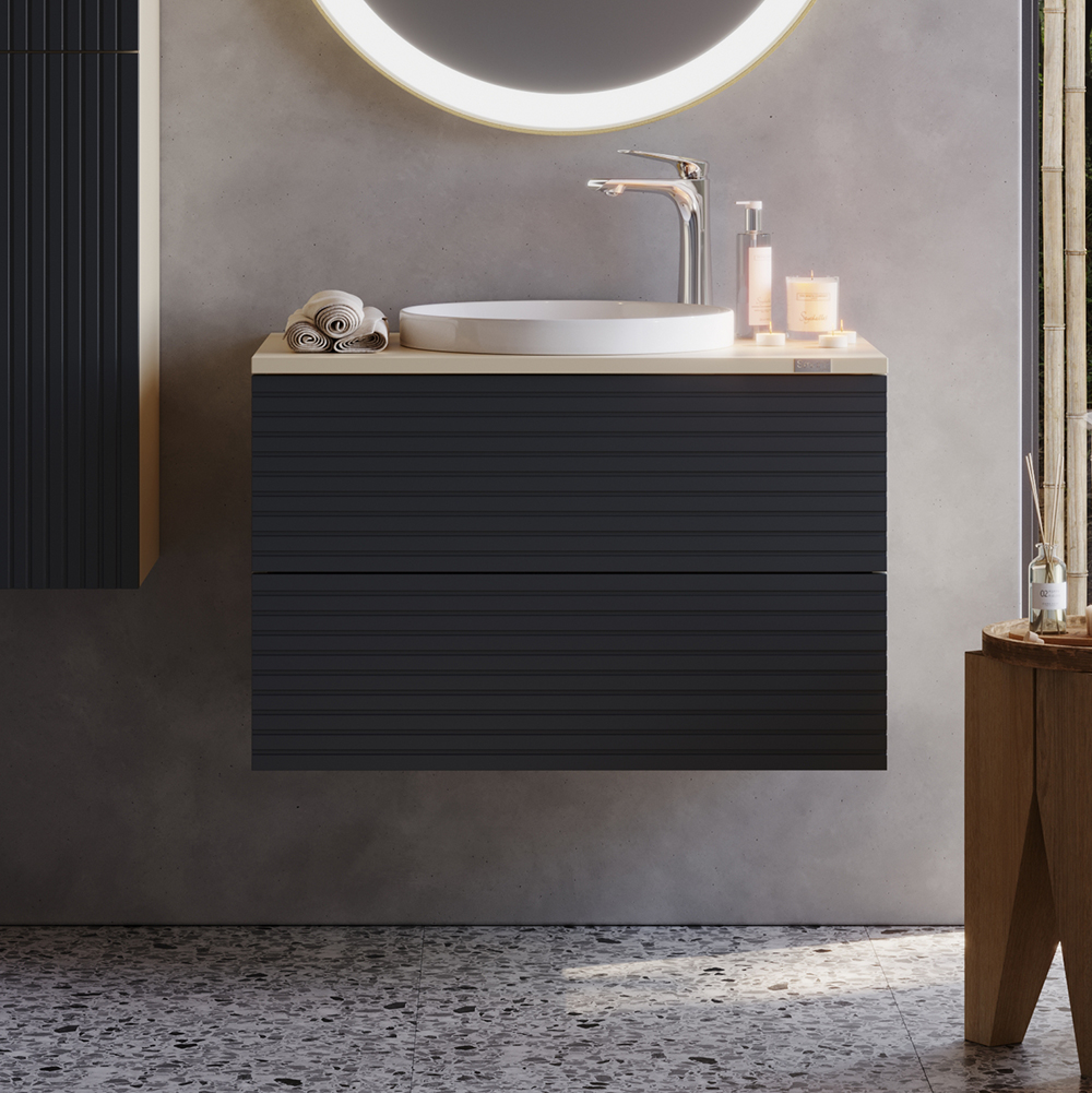 Πάγκος VIEN Ανθρακί MDF 18mm Λάκα 80 S3BVIE080ANBM 80x50x52cm Αποτελείται από: Πάγκος VIEN Ανθρακί 80 κρεμαστός σε ματ λάκα και υλικό mdf. Διαθέτει δύο συρτάρια με μηχανισμό push για την τοποθέτηση και οργάνωση αντικειμένων. Νιπτήρας κεραμικός χρώματος λευκού, κορυφαίας κατασκευής και υψηλής αισθητικής. Διαθέτει οπή υπερχείλισης. Ματ λάκα 2 συστατικών σε MDF. Ο Πάγκος VIEN Ανθρακί απόχρωση αποτελεί ένα στυλάτο και μοντέρνο κομμάτι με εργονομικό σχεδιασμό αλλά και λειτουργικότητα. Προσαρμόζεται σε κάθε τύπο μπάνιου. •Πρακτικοί αποθηκευτικοί χώροι •Μηχανισμό Push to open •Εύκολη τοποθέτηση •Ετοιμοπαράδοτα προϊόντα Δεν συμπεριλαμβάνονται η μπαταρία και τα διακοσμητικά. Διατίθεται έτοιμο συναρμολογημένο.
